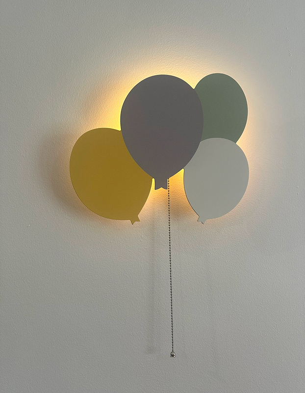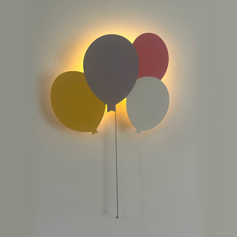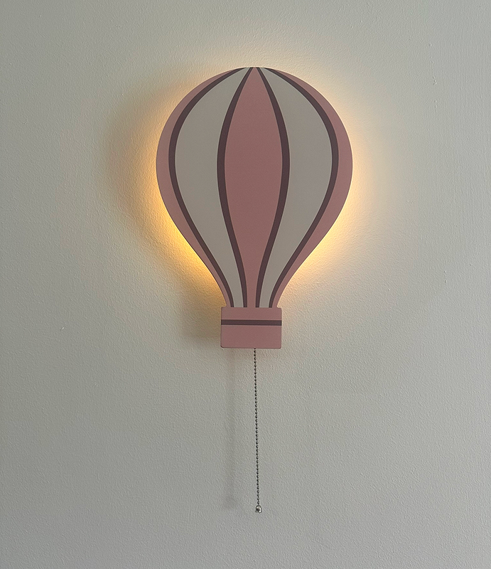 Pink Hot Air Balloon Wooden Nursery Wall Lamp