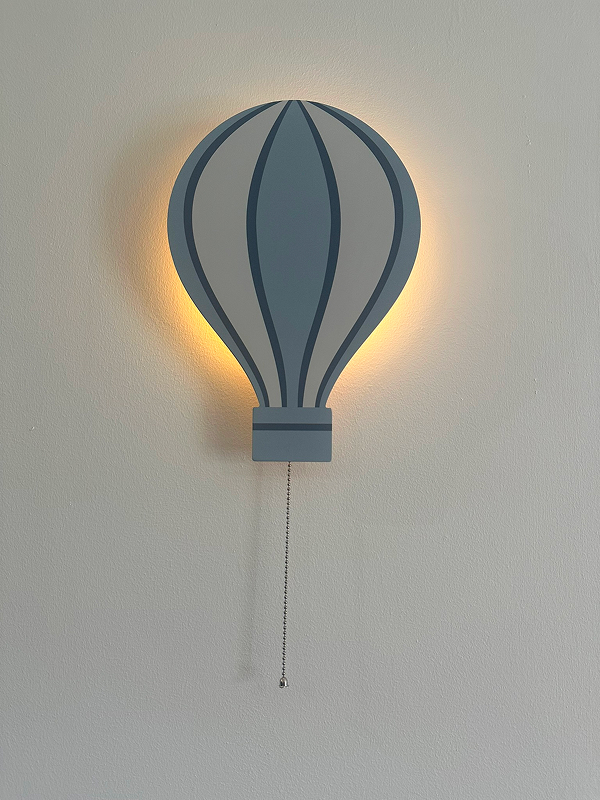Blue Hot Air Balloon Wooden Nursery Wall Lamp
