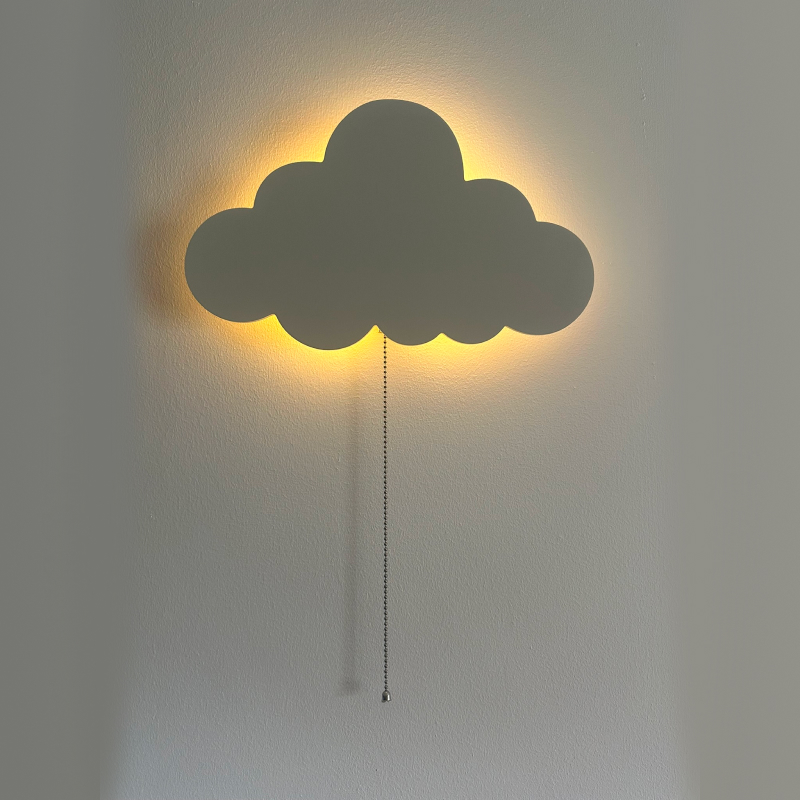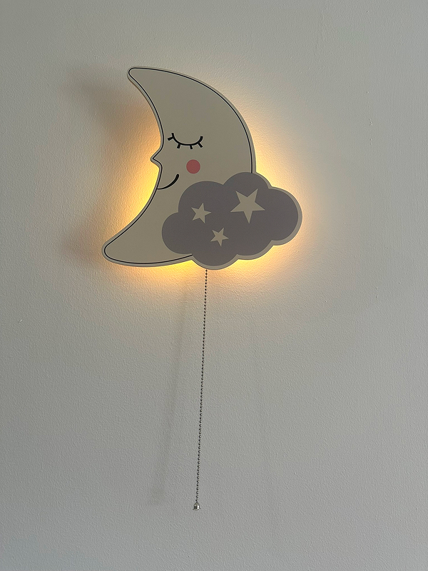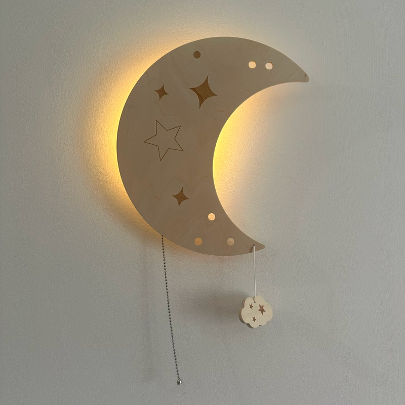 Sleeping Moon and Cloud Wooden Nursery Wall Lamp