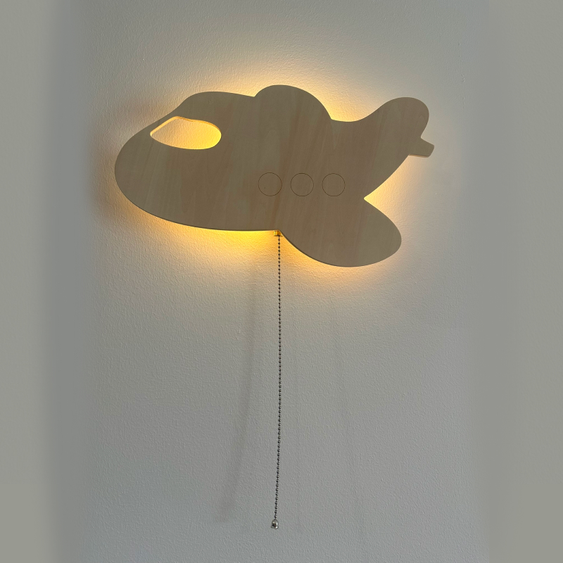 A charming airplane-shaped nursery wall lamp that adds soft, warm lighting and a...