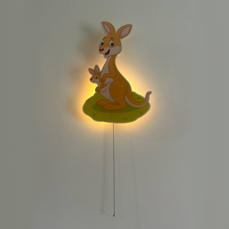 Cheerful kangaroo and joey lamp for playful nursery decor.